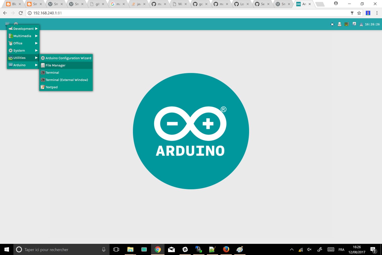 - comme dans l'article précédent passer par la page d'accueil / Admin / ArduinoOs / icone Arduino en haut à gauche / Utilities... mais cette fois, au lieu d'utiliser File Manager, choisissez "Terminal".