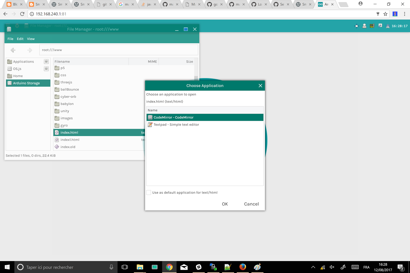 Dans l'article précédent, nous avions utilisé l'interface d'administration officielle "ArduinoOs" pour modifier la page d'accueil, tout en mentionnant qu'il était possible d'utiliser WinSCP et putty, et c'est ce que nous allons faire dans ce tutoriel.