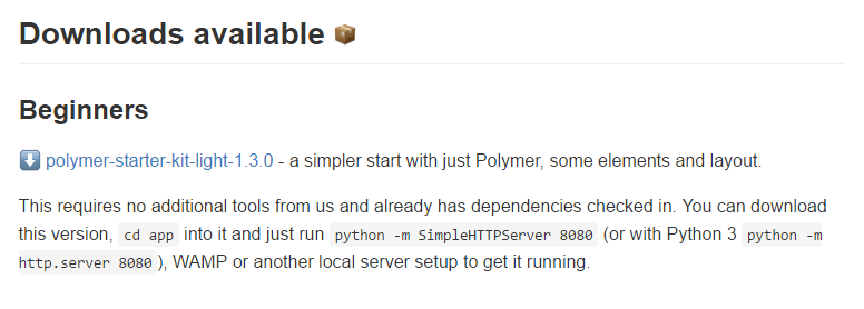 - l'application polymer doit maintenant être installé, pour vérifier, vous pouvez la lancer en utilisant la commande "polyserve" et elle devrait être accessible à l'adresse http://localhost:8080
