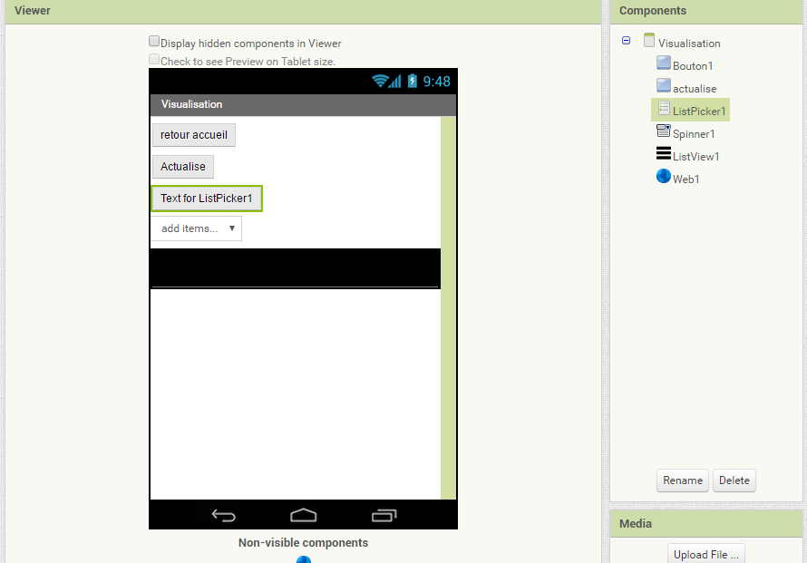 Evidemment, on va encore splitter pour avoir l'affichage voulu... et surtout choisir entre ListPicker, Spinner et Listview...