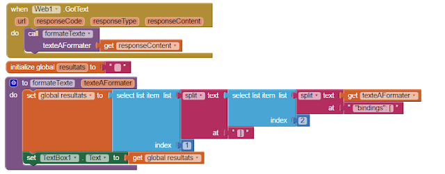 --> créer la fonction "formateTexte", la variable "resultat", et modifiez la fonction "When Web1.GotText" comme ceci :