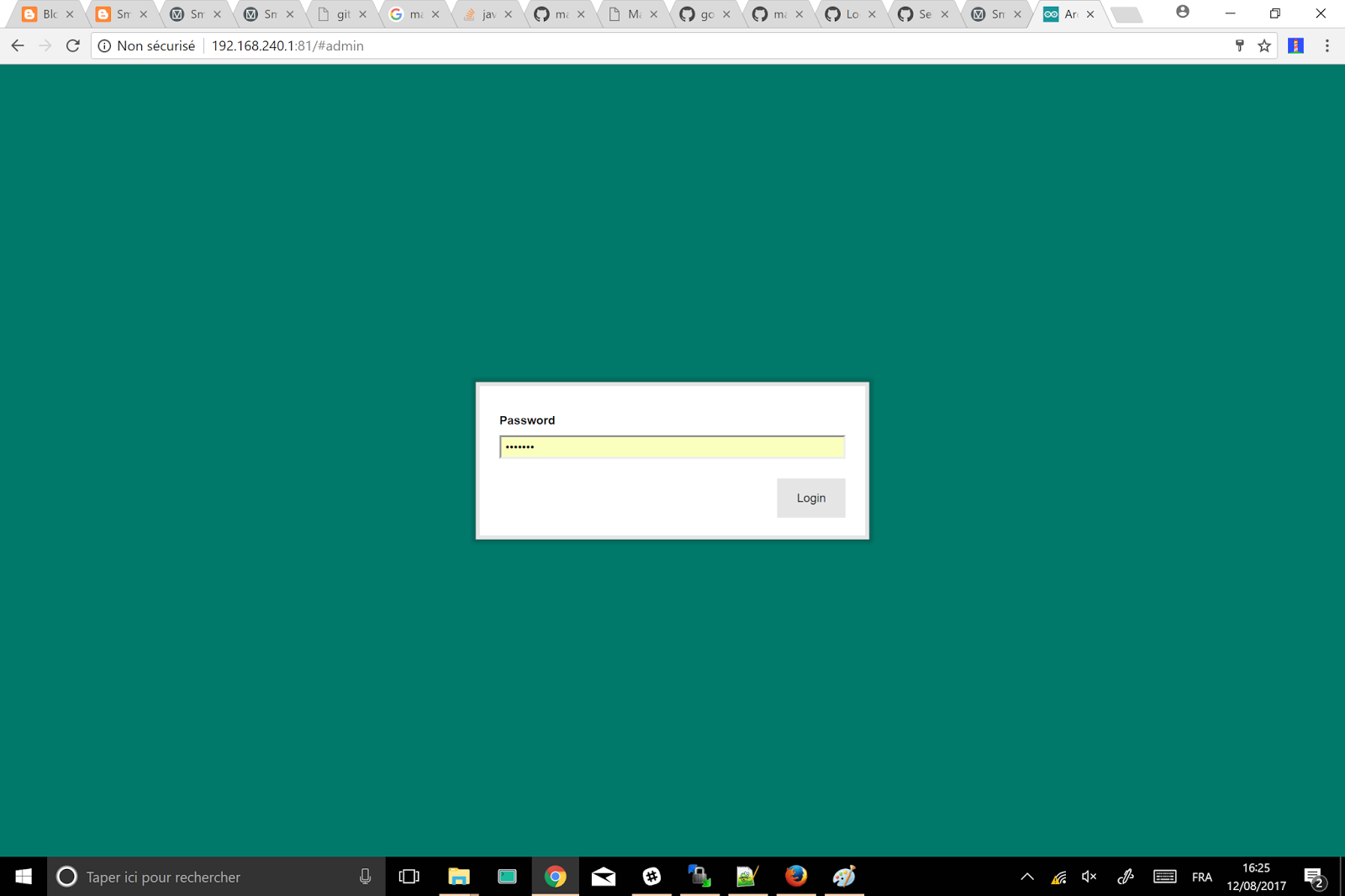 - rendez-vous dans la section Admin, et cliquez sur "ArduinoOs", saisissez le mot de passe de la carte (arduino par défaut, PENSEZ A LE CHANGER SI VOUS ETES ADMIN !!!!)