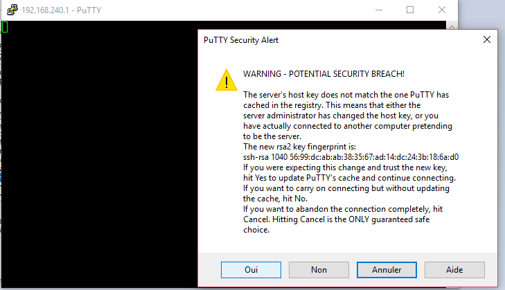 Si putty vous demande d'ajouter / mettre à jour la clé ssh, validez.